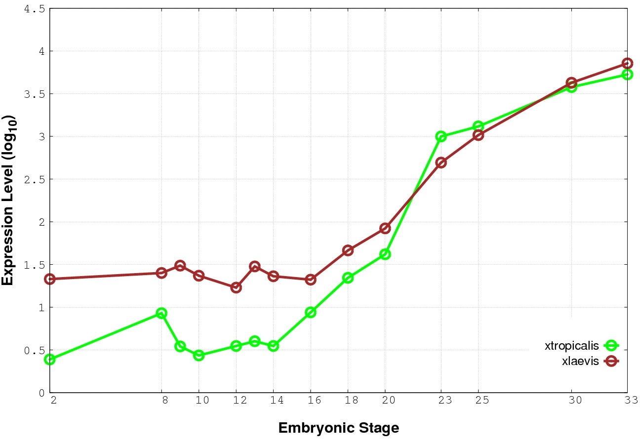 | RNA-Seq and EST Transcriptome profiles | ???displayGene.tropicalis??? | ???displayGene.laevis???.L | ???displayGene.laevis???.S |