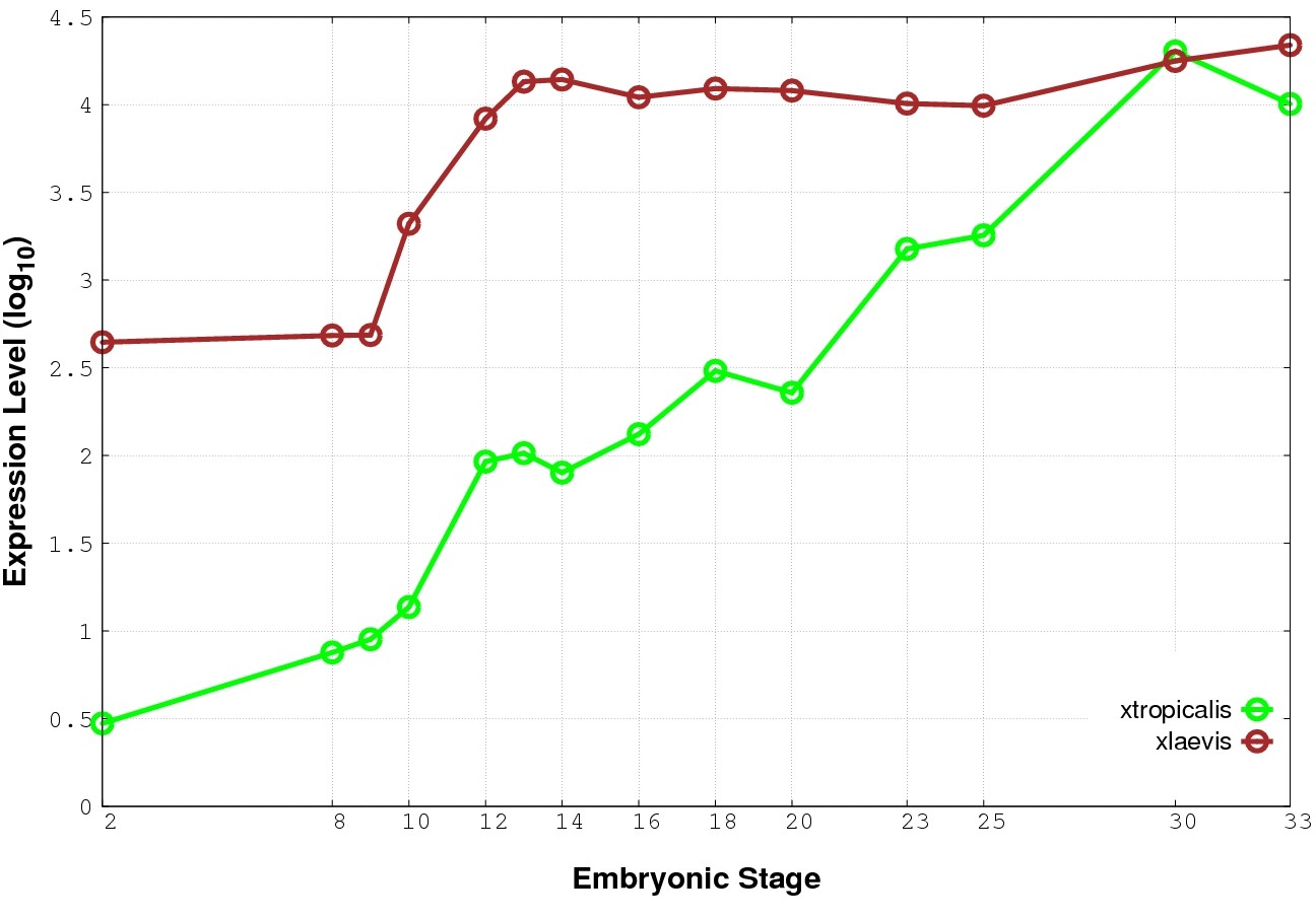 | RNA-Seq and EST Transcriptome profiles | ???displayGene.tropicalis??? | ???displayGene.laevis???.L | ???displayGene.laevis???.S |