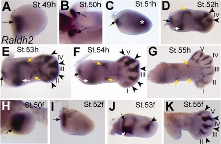 NF stage 10.5 to NF stage 11 Janesick, et al. 2018 | NF stage 11 Shiotsugu, et al. 2004 | NF stage 11 to NF stage 12 Cartry, et al. 2006 | NF stage 13 Deimling, et al. 2009 | NF stage 13 Andreazzoli, et al. 2003 | 29 more [+] |