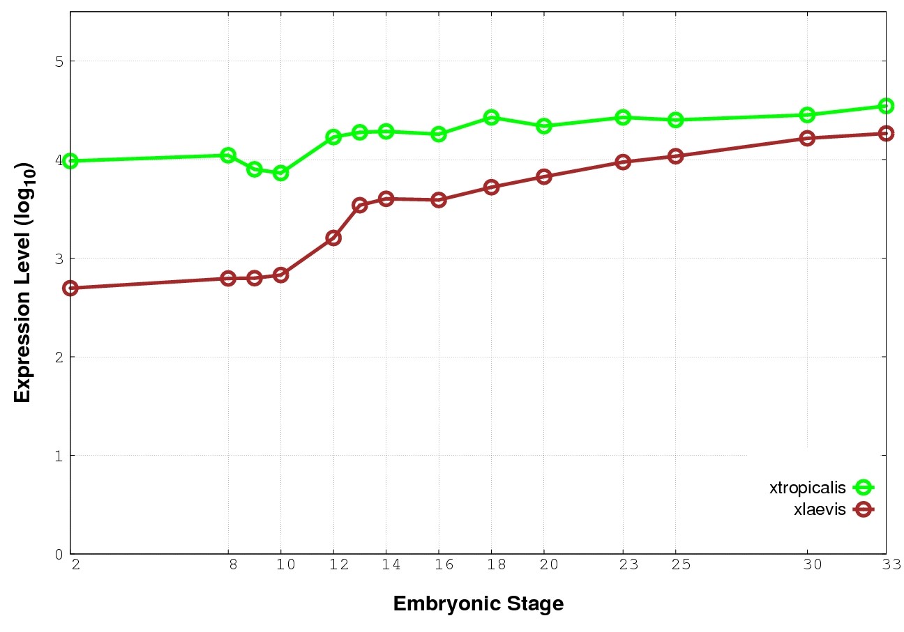 | RNA-Seq and EST Transcriptome profiles | ???displayGene.tropicalis??? | ???displayGene.laevis???.L | ???displayGene.laevis???.S |