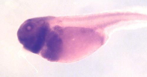 | brain endoderm endomesoderm eye foregut head intestine lens lens transitional zone liver midbrain-hindbrain boundary pharyngeal region testis whole organism |