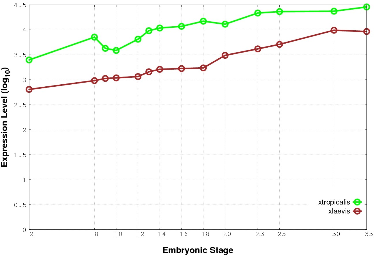 | RNA-Seq and EST Transcriptome profiles | ???displayGene.tropicalis??? | ???displayGene.laevis???.L | ???displayGene.laevis???.S |