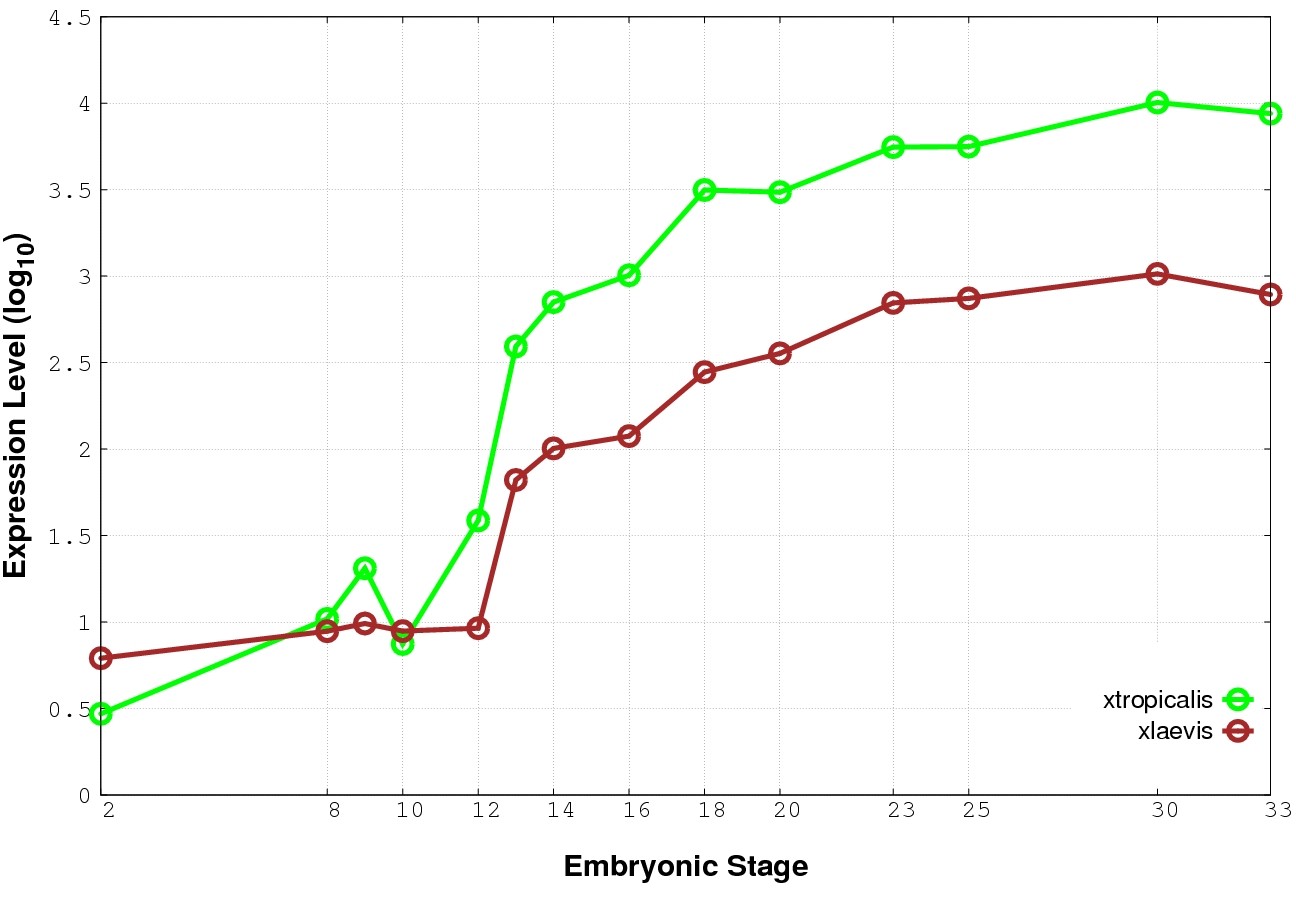 | RNA-Seq and EST Transcriptome profiles | ???displayGene.tropicalis??? | ???displayGene.laevis???.L | ???displayGene.laevis???.S |