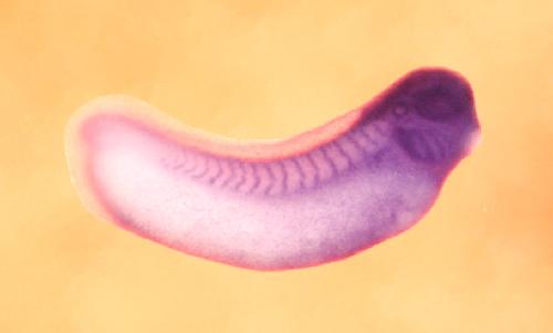 | anterior ventral blood island brain eye head intermediate mesoderm intersomitic region otic vesicle pharyngeal region proctodeum spinal cord tail bud whole organism |