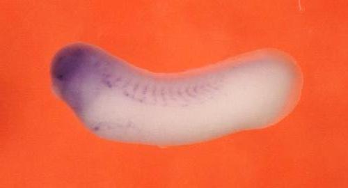 | brain eye fat body head head region intermediate mesoderm lateral plate mesoderm mesoderm neural tube pancreas pharyngeal region somite spinal cord testis ventral whole organism |
