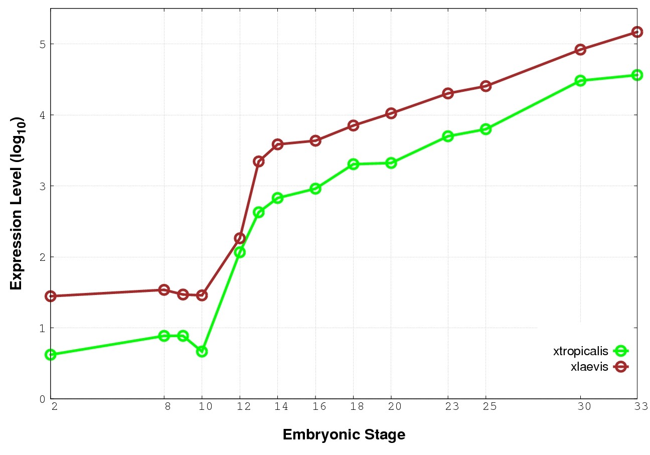| RNA-Seq and EST Transcriptome profiles | ???displayGene.tropicalis??? | ???displayGene.laevis???.L | ???displayGene.laevis???.S |