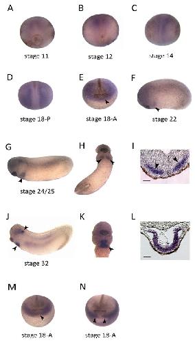 NF stage 6 (32-cell) to NF stage 7 Yamak, et al. 2014 | NF stage 10.5 Mukherjee, et al. 2020 | NF stage 11 Miazga, et al. 2009 | NF stage 10 to NF stage 11 Afouda, et al. 2005 | NF stage 11 Sinner, et al. 2004 | 24 more [+] |