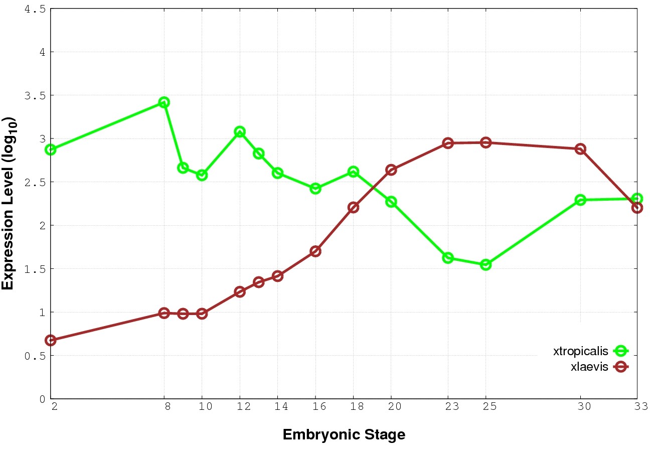 | RNA-Seq and EST Transcriptome profiles | ???displayGene.tropicalis??? | ???displayGene.laevis???.L | ???displayGene.laevis???.S |