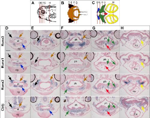 | anterior neural fold anterior neural tube anterior neuroectoderm basihyal branchial arch skeleton cartilage element cartilage tissue ceratohyal chondrocranium eye facial nerve ... [+] |