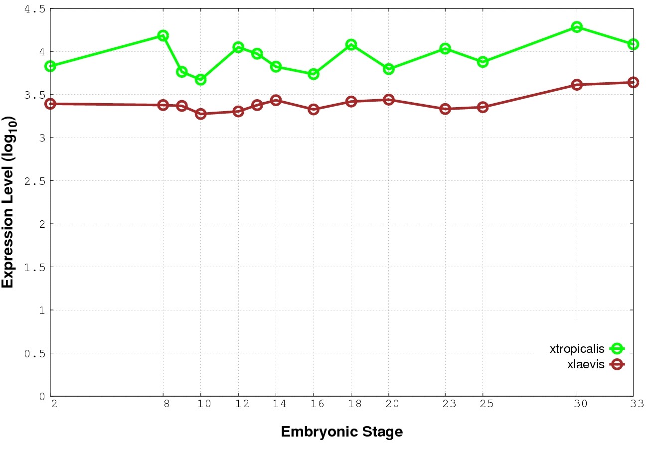 | RNA-Seq and EST Transcriptome profiles | ???displayGene.tropicalis??? | ???displayGene.laevis???.L | ???displayGene.laevis???.S |
