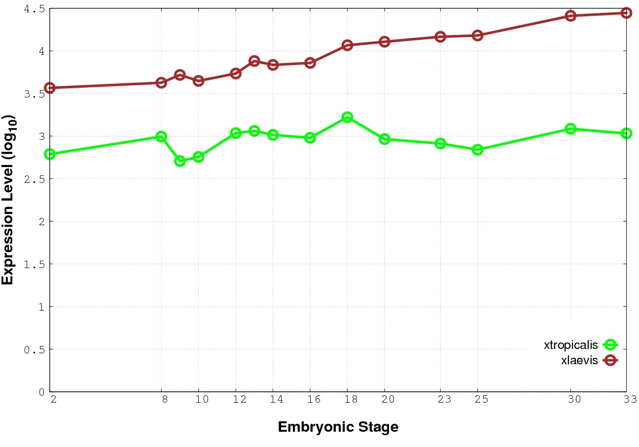 | RNA-Seq and EST Transcriptome profiles | ???displayGene.tropicalis??? | ???displayGene.laevis???.L | ???displayGene.laevis???.S |