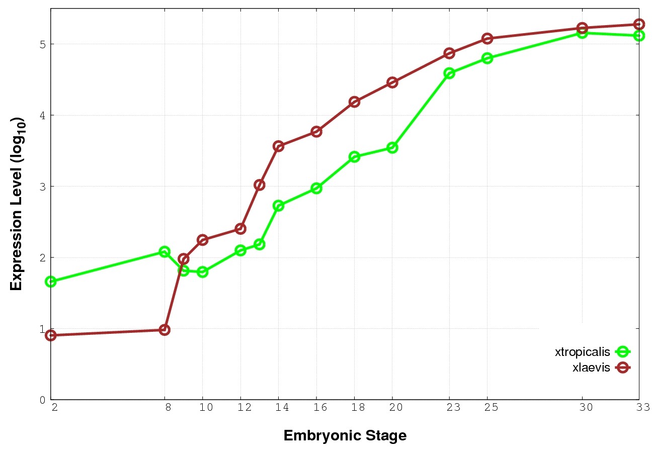 | RNA-Seq and EST Transcriptome profiles | ???displayGene.tropicalis??? | ???displayGene.laevis???.L | ???displayGene.laevis???.S |