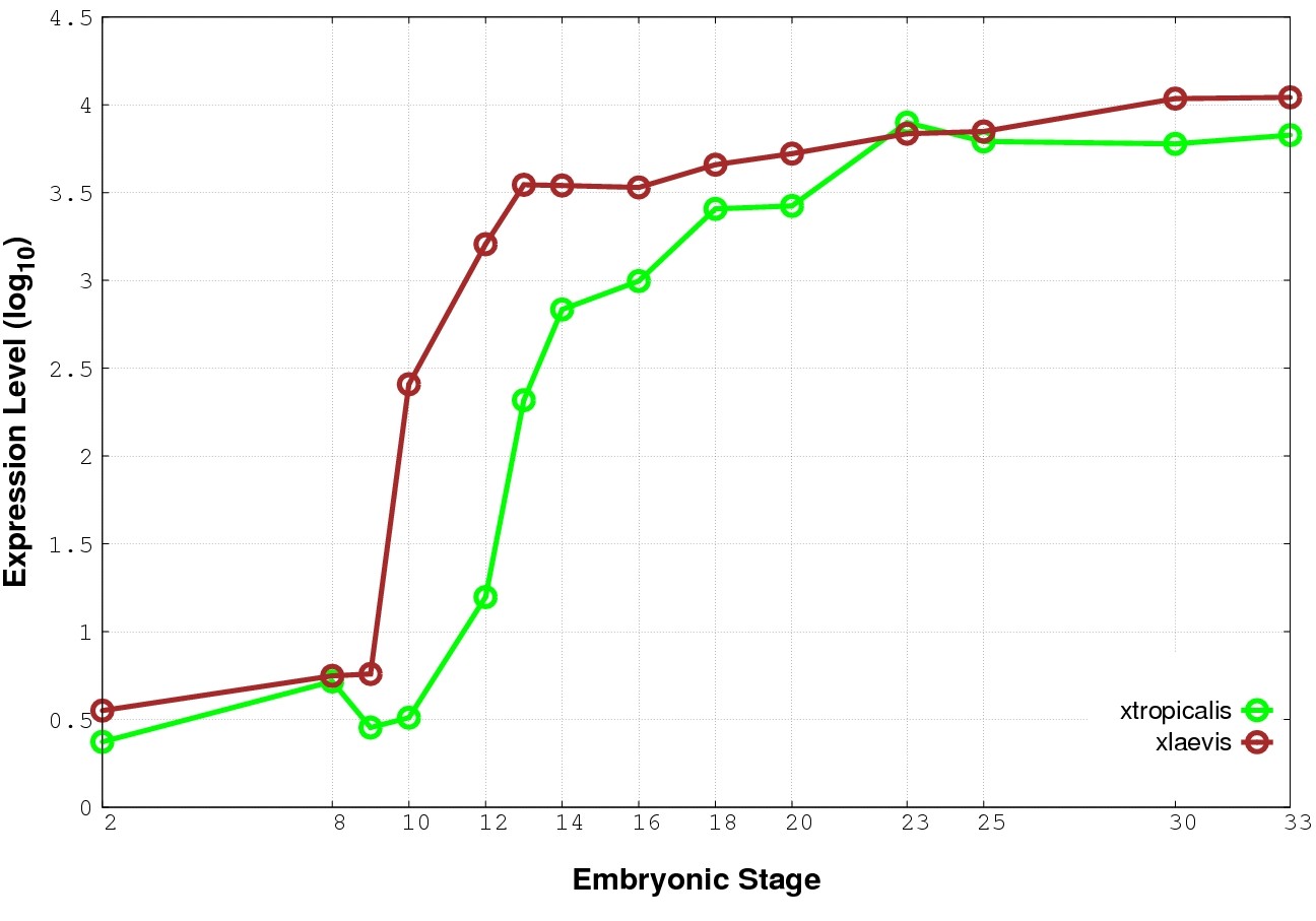| RNA-Seq and EST Transcriptome profiles | ???displayGene.tropicalis??? | ???displayGene.laevis???.L | ???displayGene.laevis???.S |