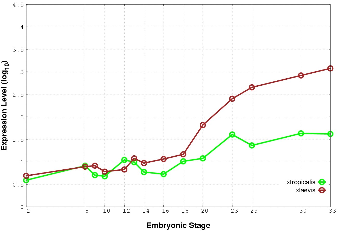| RNA-Seq and EST Transcriptome profiles | ???displayGene.tropicalis??? | ???displayGene.laevis???.L | ???displayGene.laevis???.S |