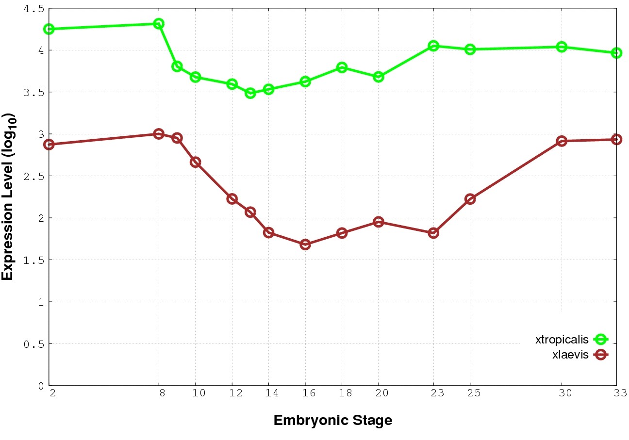 | RNA-Seq and EST Transcriptome profiles | ???displayGene.tropicalis??? | ???displayGene.laevis???.L | ???displayGene.laevis???.S |