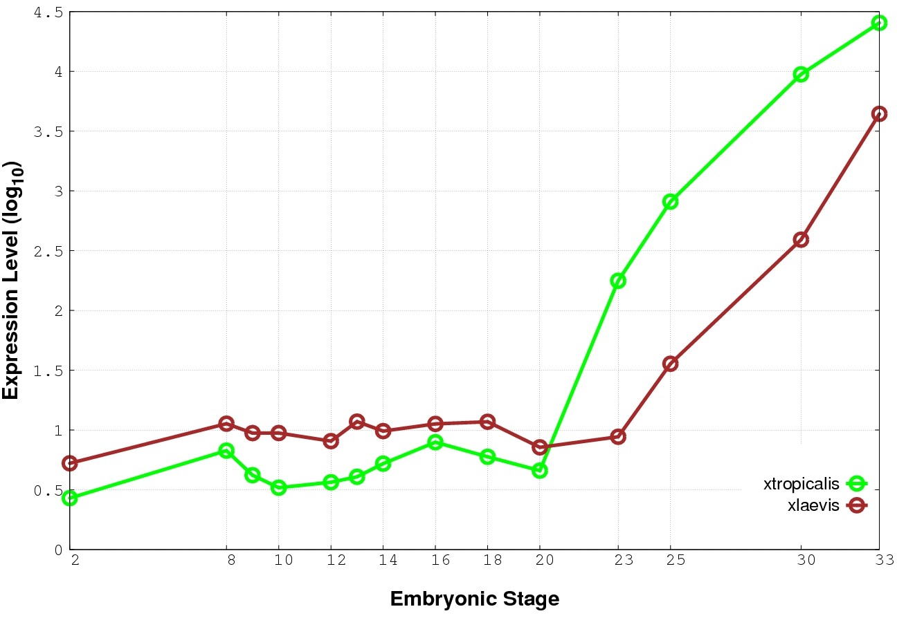 | RNA-Seq and EST Transcriptome profiles | ???displayGene.tropicalis??? | ???displayGene.laevis???.L | ???displayGene.laevis???.S |