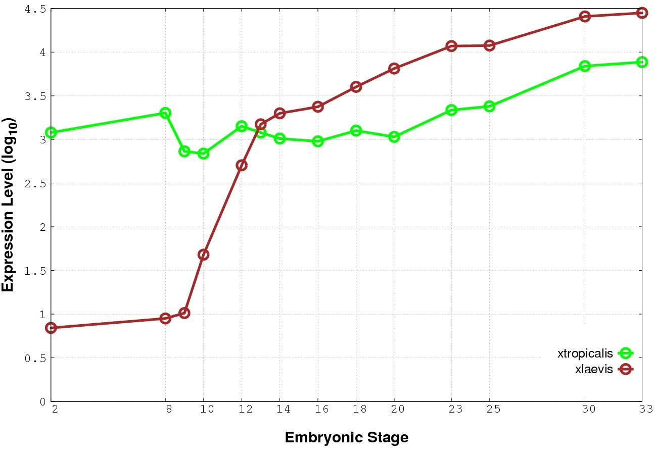 | RNA-Seq and EST Transcriptome profiles | ???displayGene.tropicalis??? | ???displayGene.laevis???.L | ???displayGene.laevis???.S |