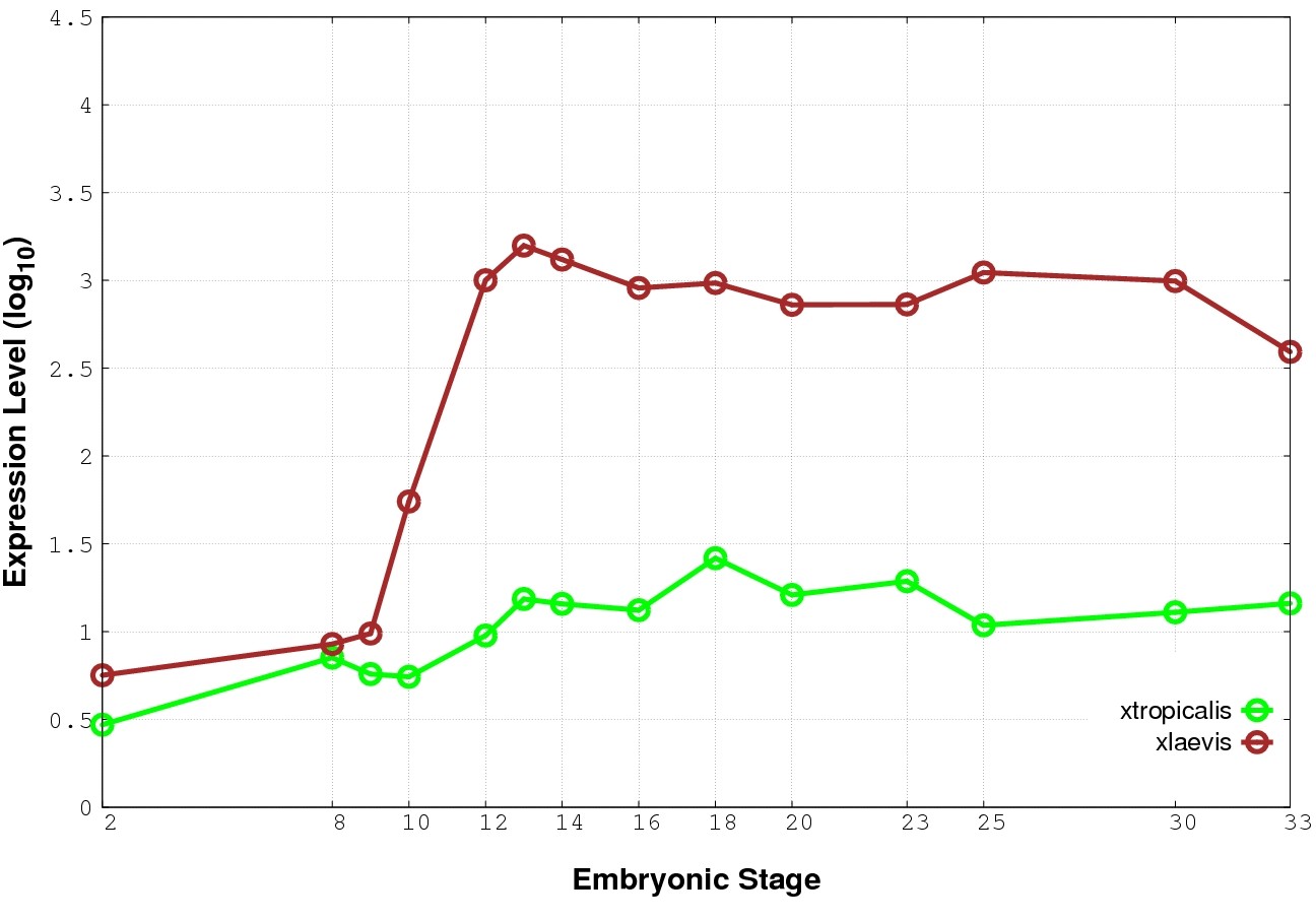 | RNA-Seq and EST Transcriptome profiles | ???displayGene.tropicalis??? | ???displayGene.laevis???.L | ???displayGene.laevis???.S |