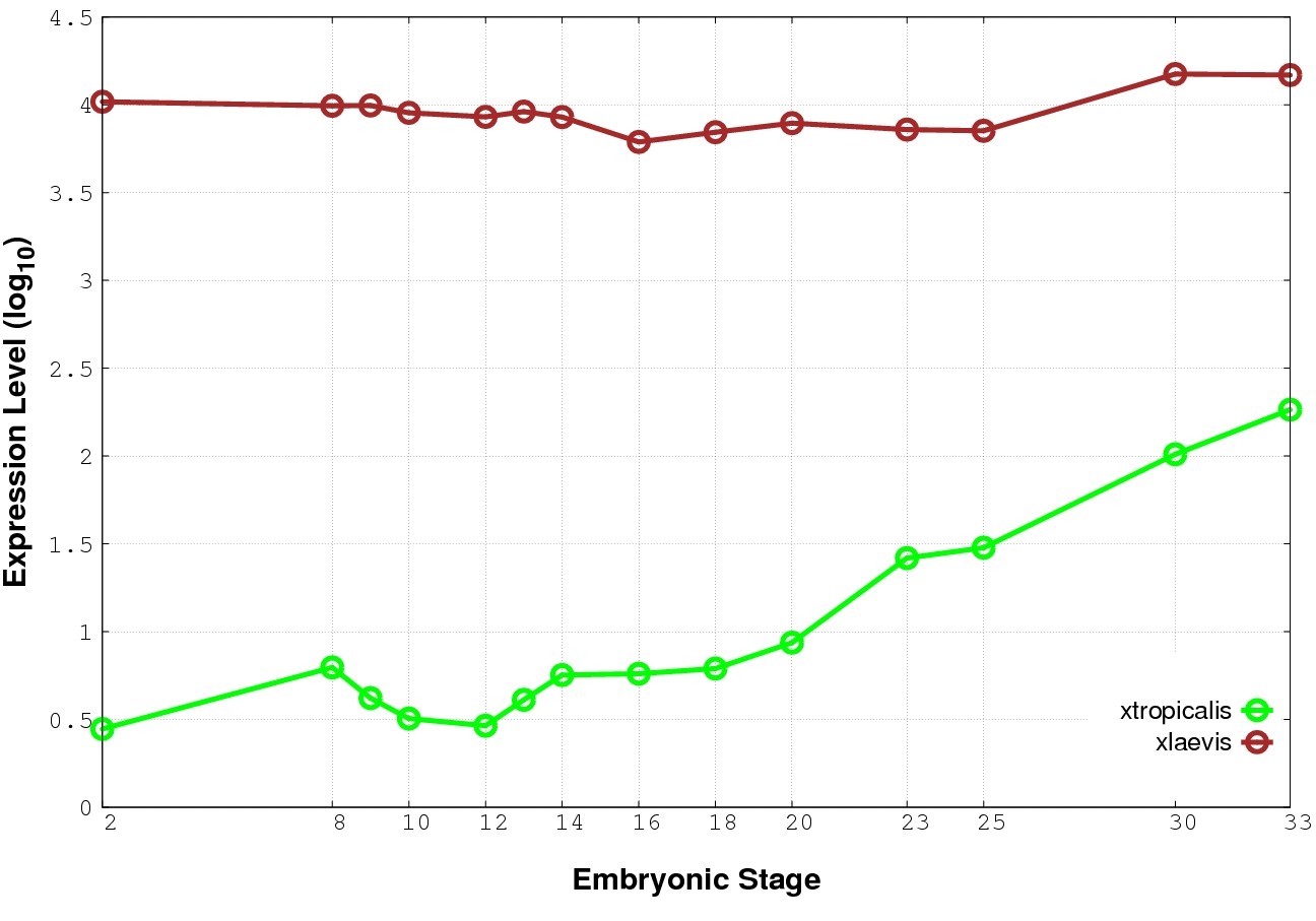 | RNA-Seq and EST Transcriptome profiles | ???displayGene.tropicalis??? | ???displayGene.laevis???.L | ???displayGene.laevis???.S |
