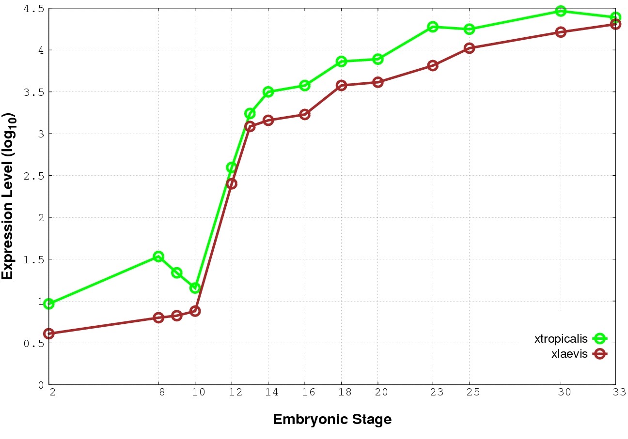 | RNA-Seq and EST Transcriptome profiles | ???displayGene.tropicalis??? | ???displayGene.laevis???.L | ???displayGene.laevis???.S |