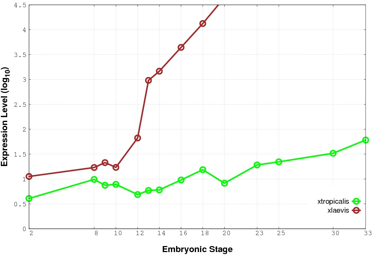 | RNA-Seq and EST Transcriptome profiles | ???displayGene.tropicalis??? | ???displayGene.laevis???.L | ???displayGene.laevis???.S |