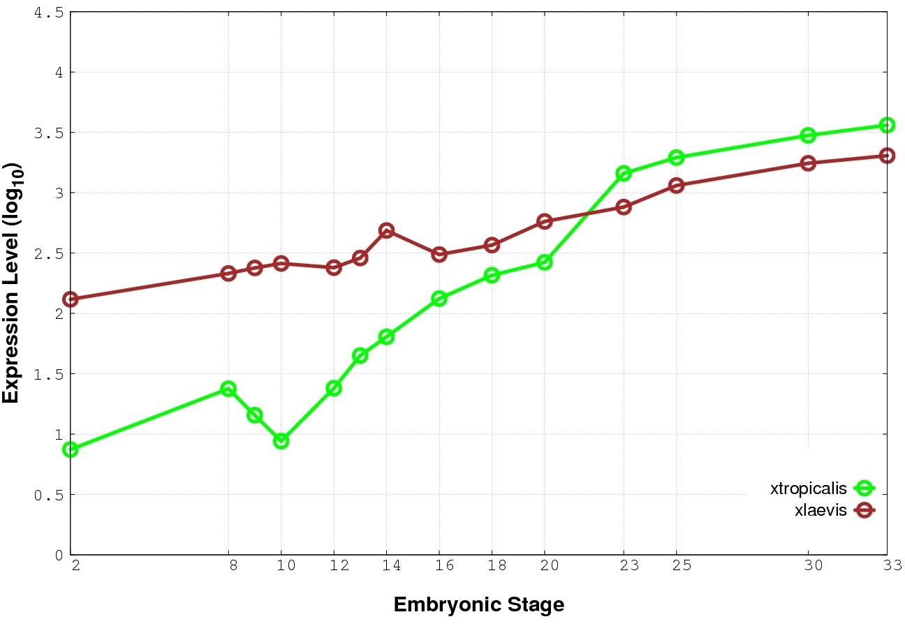 | RNA-Seq and EST Transcriptome profiles | ???displayGene.tropicalis??? | ???displayGene.laevis???.L | ???displayGene.laevis???.S |
