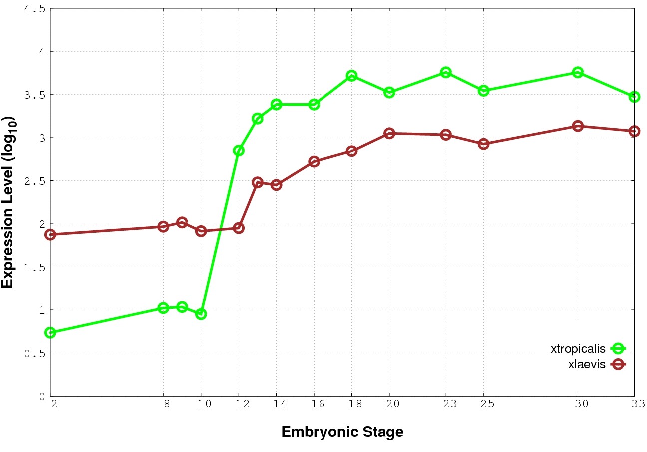 | RNA-Seq and EST Transcriptome profiles | ???displayGene.tropicalis??? | ???displayGene.laevis???.L | ???displayGene.laevis???.S |