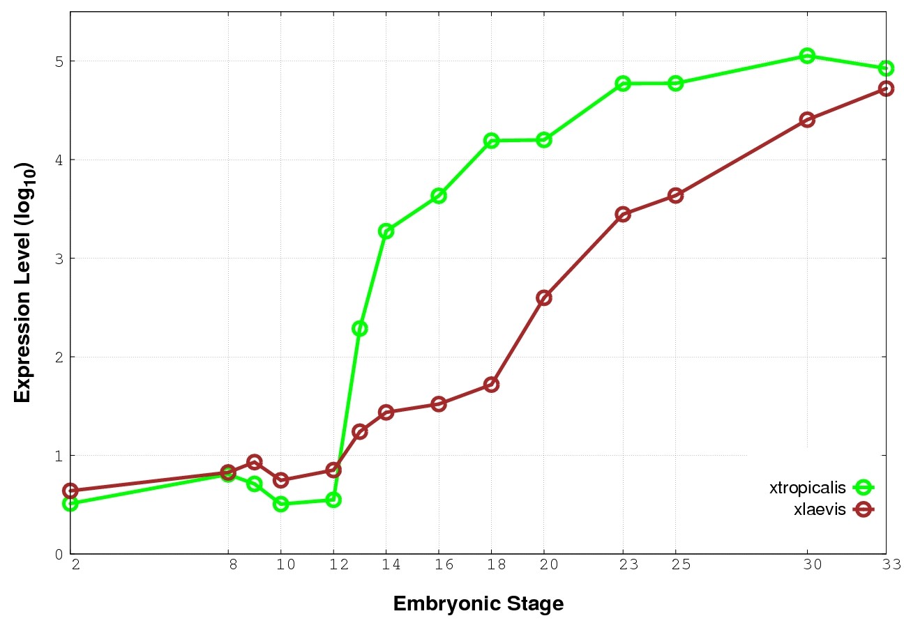 | RNA-Seq and EST Transcriptome profiles | ???displayGene.tropicalis??? | ???displayGene.laevis???.L | ???displayGene.laevis???.S |
