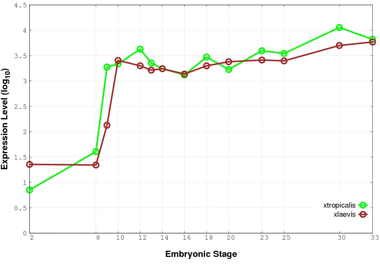 | RNA-Seq and EST Transcriptome profiles | ???displayGene.tropicalis??? | ???displayGene.laevis???.L | ???displayGene.laevis???.S |
