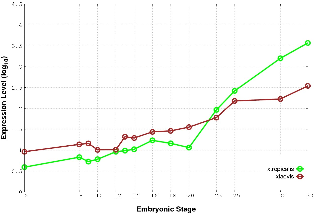 | RNA-Seq and EST Transcriptome profiles | ???displayGene.tropicalis??? | ???displayGene.laevis???.L | ???displayGene.laevis???.S |