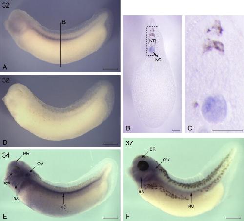 | brain branchial arch central nervous system egg endoderm eye forebrain intestine limb melanophore notochord otic vesicle pharyngeal arch whole organism |