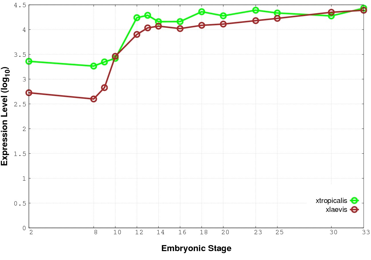 | RNA-Seq and EST Transcriptome profiles | ???displayGene.tropicalis??? | ???displayGene.laevis???.L | ???displayGene.laevis???.S |