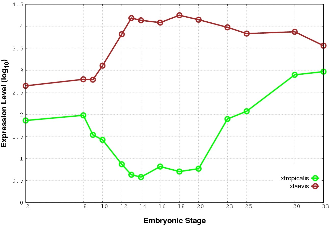 | RNA-Seq and EST Transcriptome profiles | ???displayGene.tropicalis??? | ???displayGene.laevis???.L | ???displayGene.laevis???.S |