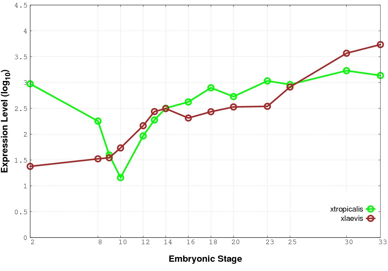 | RNA-Seq and EST Transcriptome profiles | ???displayGene.tropicalis??? | ???displayGene.laevis???.L | ???displayGene.laevis???.S |