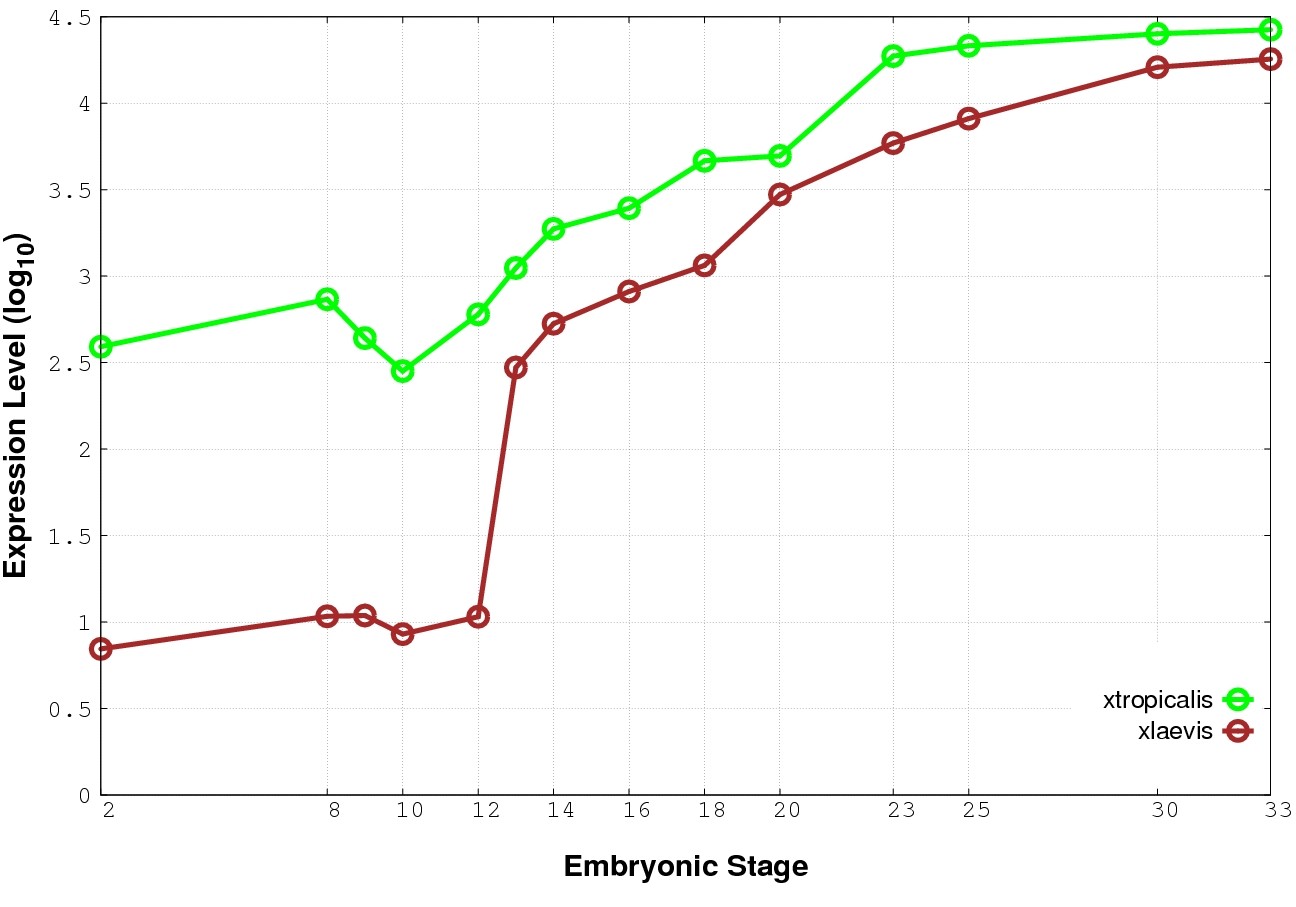 | RNA-Seq and EST Transcriptome profiles | ???displayGene.tropicalis??? | ???displayGene.laevis???.L | ???displayGene.laevis???.S |