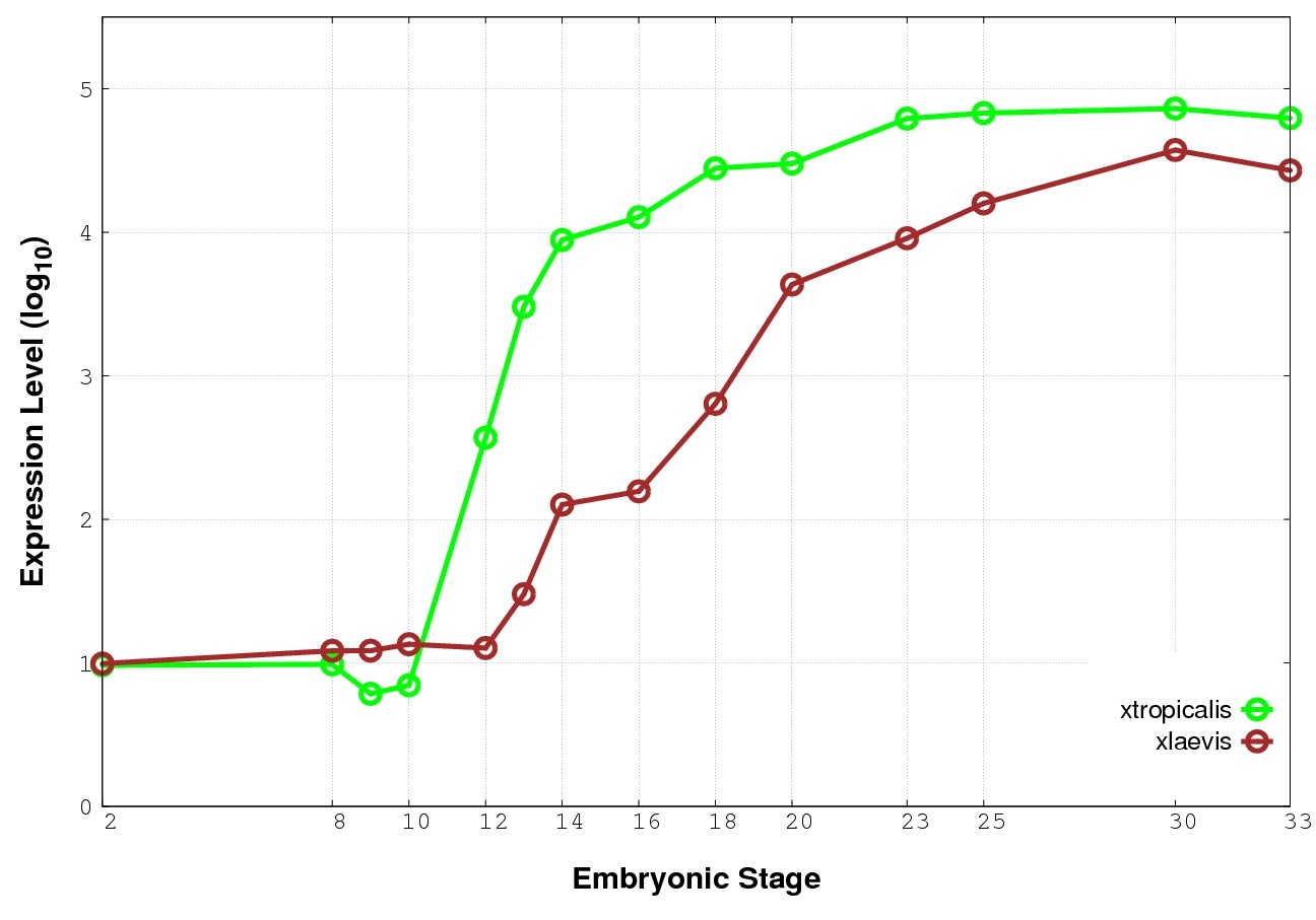 | RNA-Seq and EST Transcriptome profiles | ???displayGene.tropicalis??? | ???displayGene.laevis???.L | ???displayGene.laevis???.S |