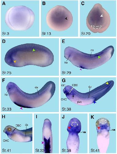 NF stage 13 Hempel, et al. 2014 | NF stage 25 Hempel, et al. 2014 | NF stage 33 and 34 Hempel, et al. 2014 | NF stage 37 and 38 Hempel, et al. 2014 | NF stage 3 (4-cell) to NF stage 41 Hempel, et al. 2014 | 1 more [+] |