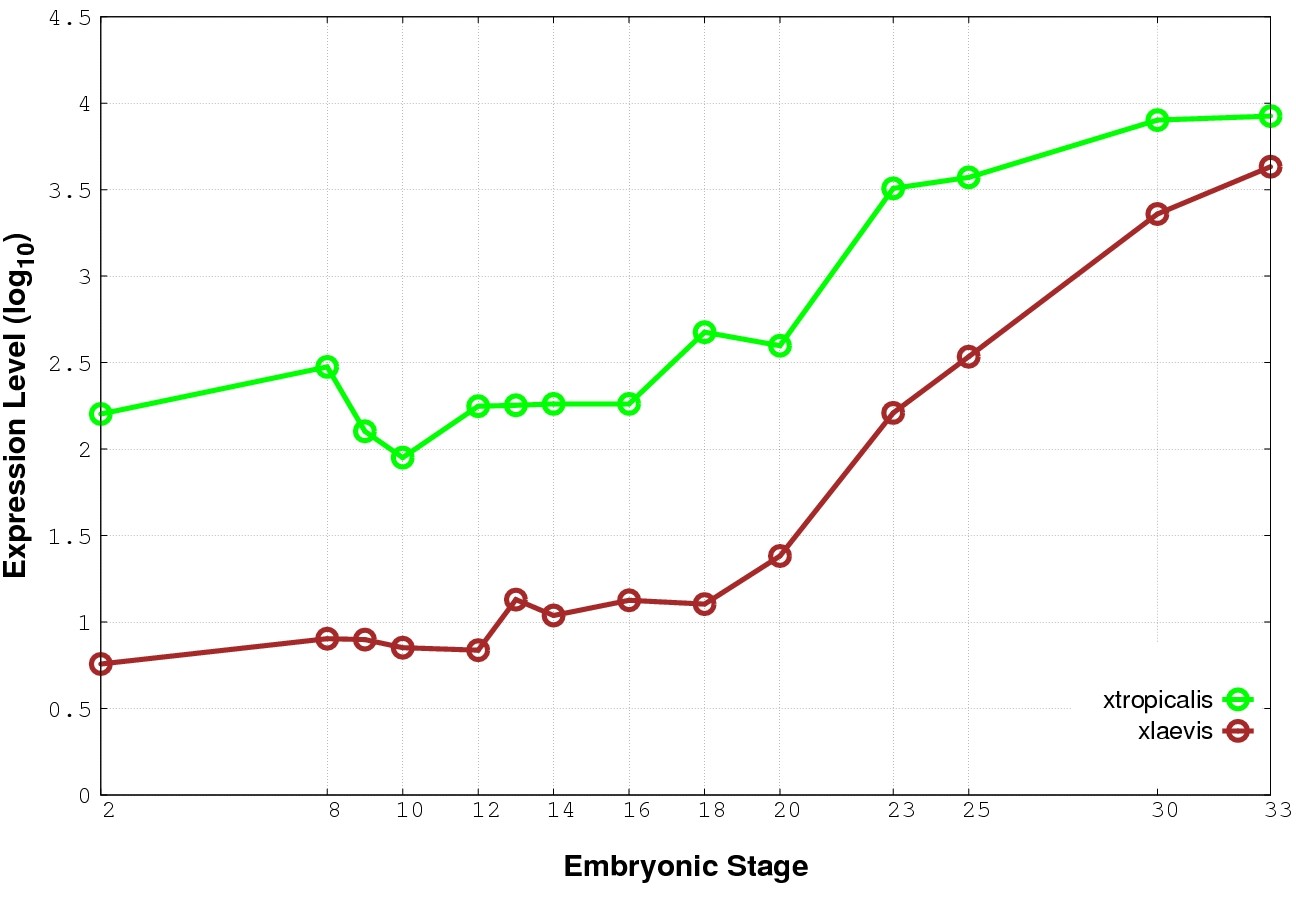 | RNA-Seq and EST Transcriptome profiles | ???displayGene.tropicalis??? | ???displayGene.laevis???.L | ???displayGene.laevis???.S |