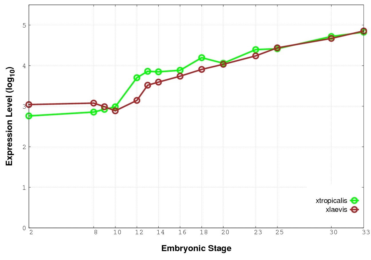 | RNA-Seq and EST Transcriptome profiles | ???displayGene.tropicalis??? | ???displayGene.laevis???.L | ???displayGene.laevis???.S |