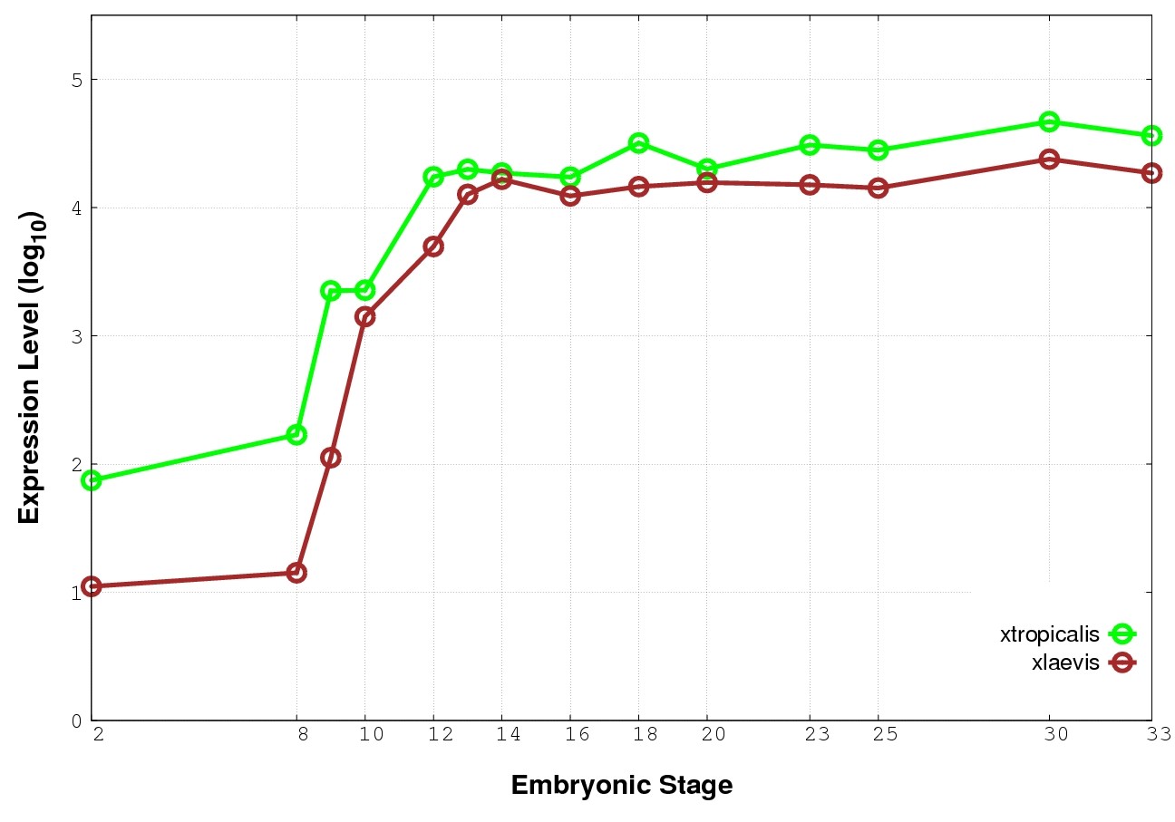 | RNA-Seq and EST Transcriptome profiles | ???displayGene.tropicalis??? | ???displayGene.laevis???.L | ???displayGene.laevis???.S |