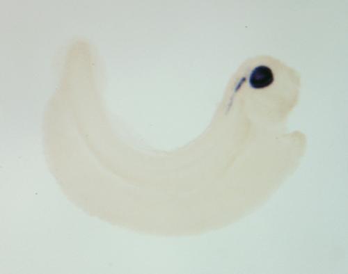 | brain eye fat body floor plate head hindbrain optic vesicle pharyngeal arch pharyngeal region posterior cardinal vein testis whole organism |