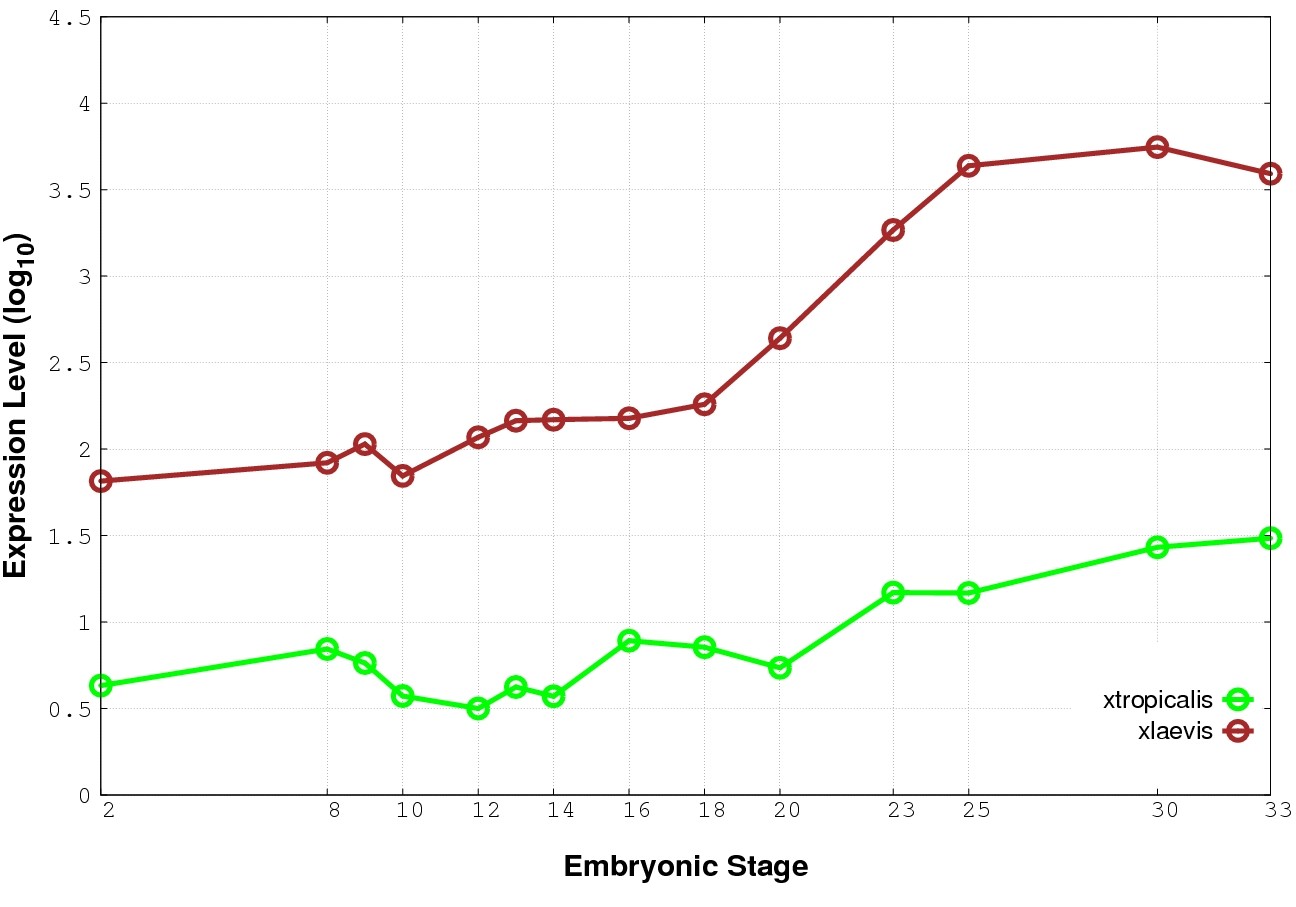 | RNA-Seq and EST Transcriptome profiles | ???displayGene.tropicalis??? | ???displayGene.laevis???.L | ???displayGene.laevis???.S |