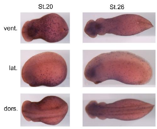 unfertilized egg stage De, et al. 1999 | NF stage 3 (4-cell) to NF stage 6 (32-cell) Tréguer, et al. 2013 | NF stage 18 Noiret, et al. 2014 | NF stage 18 Noiret, et al. 2014 | NF stage 20 Noiret, et al. 2014 | 6 more [+] |