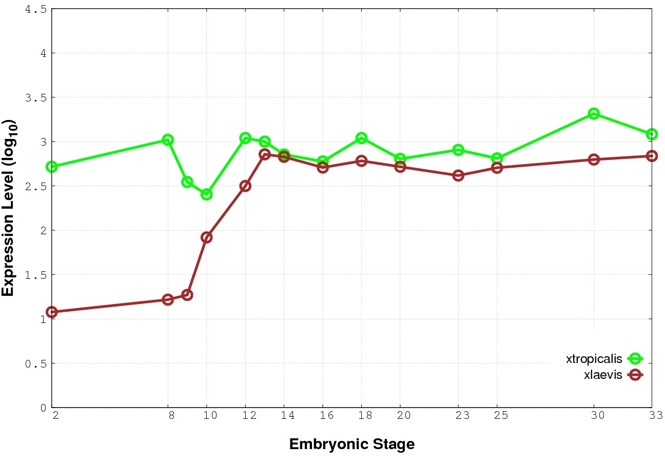 | RNA-Seq and EST Transcriptome profiles | ???displayGene.tropicalis??? | ???displayGene.laevis???.L | ???displayGene.laevis???.S |