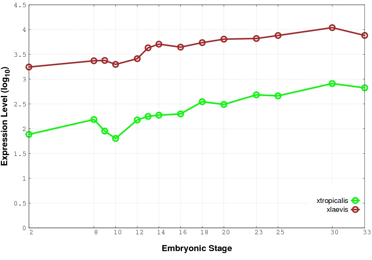 | RNA-Seq and EST Transcriptome profiles | ???displayGene.tropicalis??? | ???displayGene.laevis???.L | ???displayGene.laevis???.S |