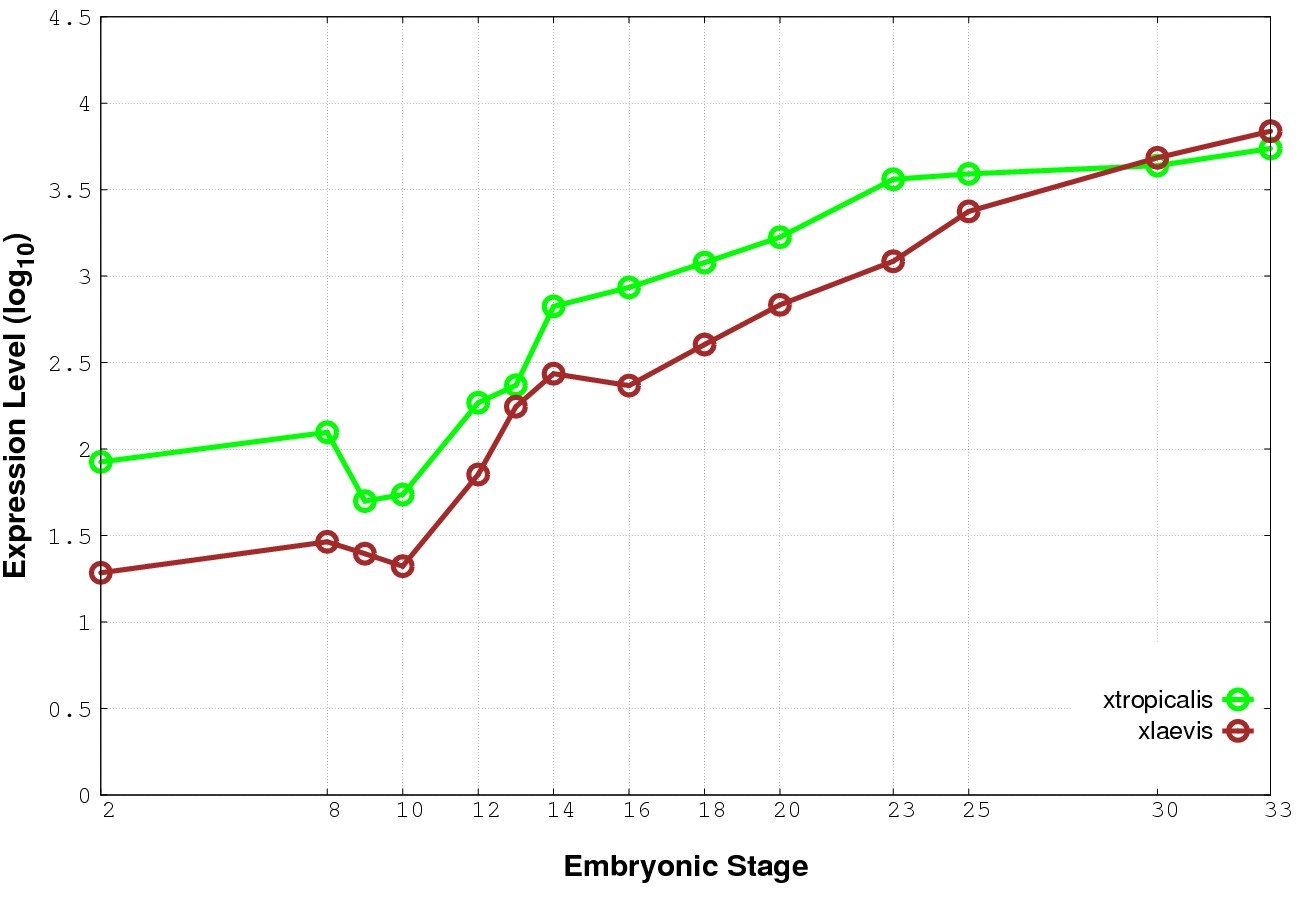 | RNA-Seq and EST Transcriptome profiles | ???displayGene.tropicalis??? | ???displayGene.laevis???.L | ???displayGene.laevis???.S |