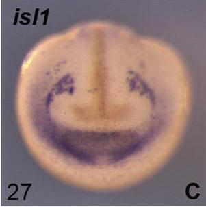 isl1 encodes a LIM homeodomain transcription factor that localizes to the nucleus and regulates differentiation of motor neurons in the spinal cord, formation of cranial motor neurons and associated ga...[+]