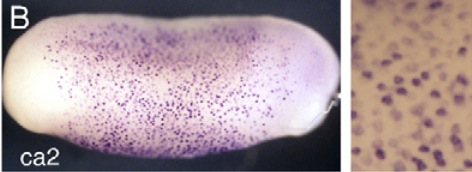 ca2 is a zinc metalloenzyme that catalyzes the reversible hydration of CO₂ to bicarbonate and functions as a cytosolic enzyme. It is expressed in kidney, pronephros, blood erythrocytes, skin, gill, int...[+]