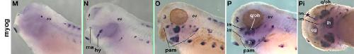 myog encodes a basic helix‑loop‑helix transcription factor that acts in the nucleus to regulate skeletal muscle differentiation, activate muscle structural genes such as myosin heavy chain and actin, p...[+]