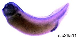 Slc26a11 is a membrane‑bound anion transporter that functions as a chloride/bicarbonate exchanger; it localizes to the plasma membrane. Expression has been detected in kidney tubules, brain regions, he...[+]